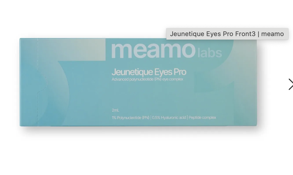Meamo Labs’ Jeunetique Eyes Pro is a revolutionary skin booster specifically designed to revitalize the delicate skin around the eyes. This powerful treatment combines polynucleotides (PN), hyaluronic acid, and ultra-short peptides to effectively target signs of aging and fatigue. By blending these advanced, scientifically-backed ingredients, it delivers visibly smoother and firmer skin.